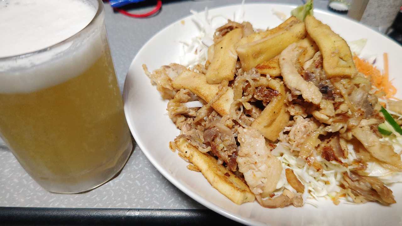 オリーブオイルとニンニクチューブで高野豆腐炒めて、ひねぽん入れて、サラダにかけて、ポン酢を