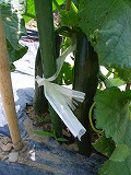 行灯で囲って放置していたキュウリにいつの間にか実が生ってしまっていた。慌ててキュウリネットを張った。