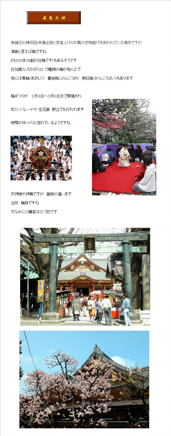 湯島の白梅で有名ですねまた学問の神様として受験生で賑わいますまさにシーズン苦しい時の神頼み藁をもすがるでも努力が重要ですよ何事もね