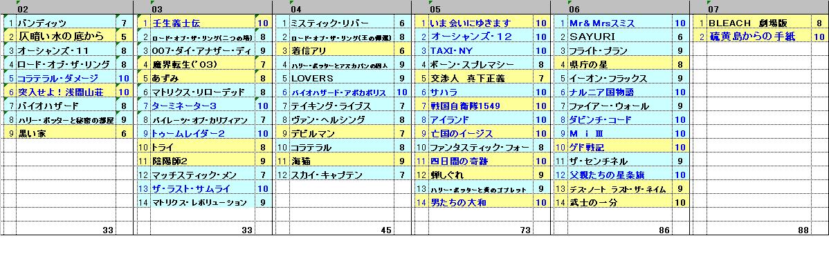 最近映画館にいってますか?DVDが普及してますのでねでも私は最近劇場に行く回数が増えましたよ近くにシネコンが出来ましたので木場109シネマですシネコンは見やすいですね席もゆったりしているし 前の叔父さんの頭も気にならないし私の席は一番後ろですここが指定席別に料金は払ってませんがねで 見終わったら採点してます10点満点で・・・・