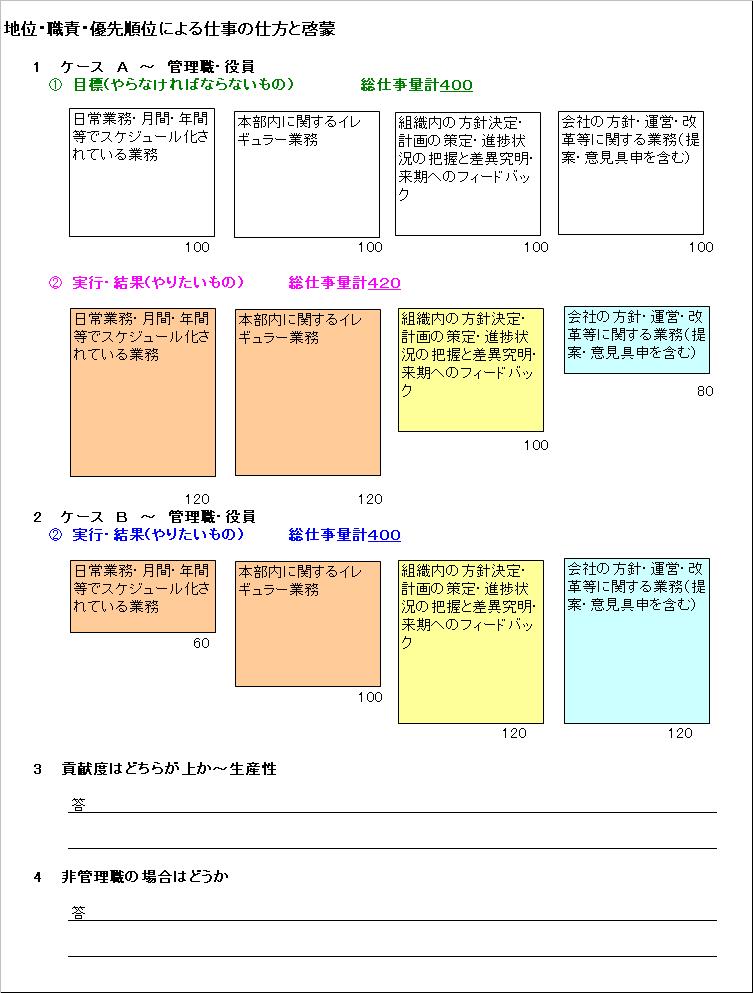 皆様お正月気分も払拭されましたかお仕事お疲れ様です仕事って色々な側面がありますね経済的には 生活の糧を得る精神的には 達成感を得られる 別の見方をしますと仕事は二つに分類されると思います狭義の仕事と作業ですね狭義の仕事と作業の違いは独自の工夫の余地がどれだけ有るかにかかります語弊はありますが簡単に言いますと頭を使うのが仕事で 身体を使うのが作業です誤解されると困るのですがどちらが良いとか悪いとか言うのでは有りませんまたどんな仕事にも両方が存在しています決して片方だけでは成り立たないのですそれは職種や業種によっても当然異なります例えば技術職人作品自体は身体を使って完成させますがこの根底には様々な技術の習得と鍛錬や創意工夫を必要としますこの部分は頭を使うと言う事ですここでは一般的なサラリーマンを想定している事を申し添えておきます