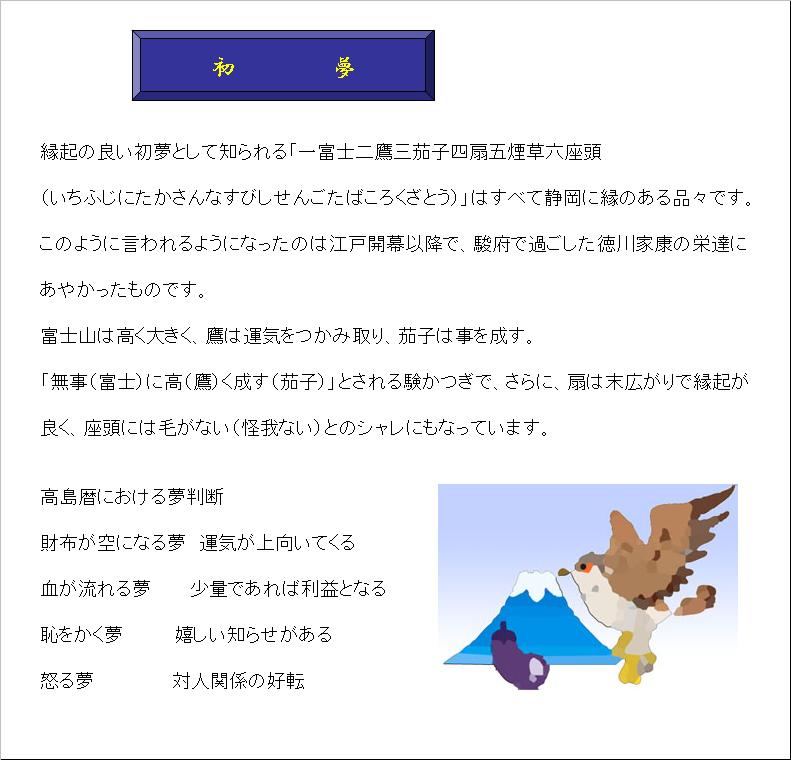お正月も過ぎました今年は初夢見ましたか私は以前勤務していた会社の夢でした色気も何も有ったもんじゃあ有りません