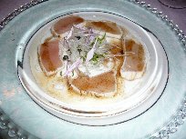 はとバス侮れません 宿泊したのは「りんどう湖ロイヤルホテル」4時過ぎには到着し 夕食は6時半からと添乗員さんから聞きました それならば まずはひとっ風呂大浴場は温泉では有りませんが熱めで私好み恐らく42.5度くらいだと思います小さなお子様は熱すぎてグズッテいました 大人でも苦手な人は敬遠して脇にある小さな湯船に移動しています 私はここに10分浸かり 露天風呂へと身体は熱く 頭がひんやりここでも10分以上 あ~ぁ 極楽 極楽 ♪ 普通はここで浴衣ですよねでも 浴衣にスリッパは御法度です 理由はフレンチのフルコースだから私は浴衣で据え膳派ですがたまにはこんなのも良いのかと まずは前菜 「寒鰤のマリネ小葱巻き 白髪葱添えバルサミコソース」何んだ大袈裟なと思いますよ葱は普段食べませんが この葱は独特の臭みが無く頂けましたでも名前負けしてると思います そしてスープ「しゃこのビスク カプチーノ仕立」 そして魚料理は「活けかわはぎの香り蒸し オリーブのソース」 美味しいのですが 味が淡白と言いますか薄いのですおかずにはなりません そして問題の肉料理「特選那須ハーブ牛ロースのステーキ レモン醤油と山葵添え」 見た目は美味しそうなのですソースも美味しいのですしかし問題が有りましたステーキは脂身が無くフィレみたいなので安心していましたが ナイフを入れると中はレァもろ 生です赤いのです かみさんの皿に移動させました メイン・ディッシュが・・・・無くなりました パンにはバターをたっぷり付けて頂きました温かかったのでフワフワしたパンです 次はデザート「ホテル特選デザート」との表示ですクリスマス・ツリーのクッキーを付けてアイスを頂くのですケーキも中々美味しかったですよ 一番最後は紅茶を選択しご馳走様でした♪ まぁ 良い経験をさせて頂きました結構 お腹は一杯になるものですね 相対的にお皿が勝っています料理はちょこっとこれがフレンチですかねぇ 食器類はさすがに綺麗で豪華でしたよ かみさんと お袋は大満足でした