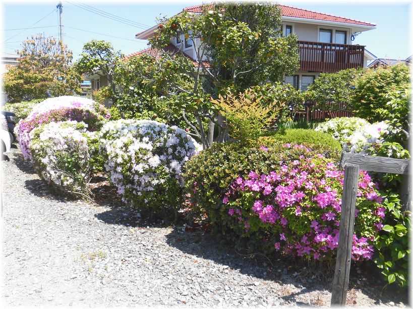財布の中にドラッグストアの3日間有効の10%引き券があったので1.5倍入りの詰め替え用洗濯洗剤でも買おうかと歩いて行って来ましたお店は西道路の所にあって、往復で約2km位なので私にとってちょっと頑張ろう歩きコースになります歩いていたら途中にツツジがとても綺麗なお宅があって今日載せている写真はそこで撮ったものです空は青空~後ろの方に信夫山が見えていますドラッグストアに着き・・・目的の洗剤の他に柔軟剤とツナ缶を買ってリュックに詰めて背負い店から出て歩き始めると耳が短くなってしまった種まきウサギさんが遠くに見えていました