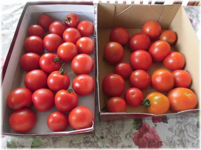 ここの所リハ歩きは朝6時頃の涼しい時間帯に歩いていました距離は1キロちょっと、時間にして3~40分ほどですがそれでも帰宅すると結構汗をかいていましてこんな実験をしてみました3日間続けて出発前と帰宅時の2回ヘルスメーターに乗ってみたらなんと3回共0.3kgも減っていたのです 大したウォーキングじゃ無いけれど、カップ一杯以上も汗をかいていたのです、つくづく水分補給って大事だなと思ったのでした 夫の畑からトマトが届く様になりましたミディアムトマトと桃太郎です早速湯むきして冷やし、サラダで美味しく頂きました