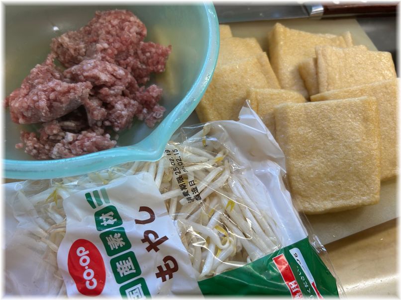 買って3日目のもやしがあって油揚げもあって、挽肉とミックスベジタブルを使って袋詰め煮を作ろうかなと思ったのです軽くゆでて切ったもやしとひき肉に少し味をつけよく混ぜてから油揚げに詰めて煮たのでした他には、目刺しを焼いて、それに夫作最後のカボチャと残っていた粒あんの餡子で作ったいとこ煮ですカボチャと餡子以外何も入れずに圧力鍋で作りました甘くて美味しいカボチャでしたので、この種を使って今年もカボチャを実らしたいと夫が申してますので、上手く行って欲しいです ꒰ •·̫• ୨୧꒱