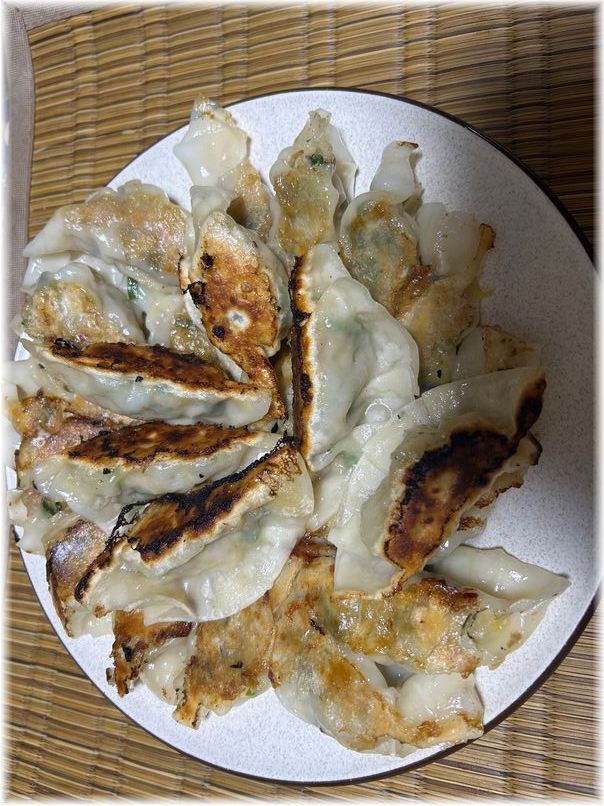 今日の夕食は餃子でしたニラが一束70円だったので中身はキャベツとニラとひき肉ですお汁は長芋とほうれん草でご飯は茶飯です昔、仙台に“おゆき”と云う人気の餃子店さんがあってそこではいつもほうじ茶で炊いた茶飯が出されていたのでちょっと真似してみました (๑•ᴗ•๑)♡