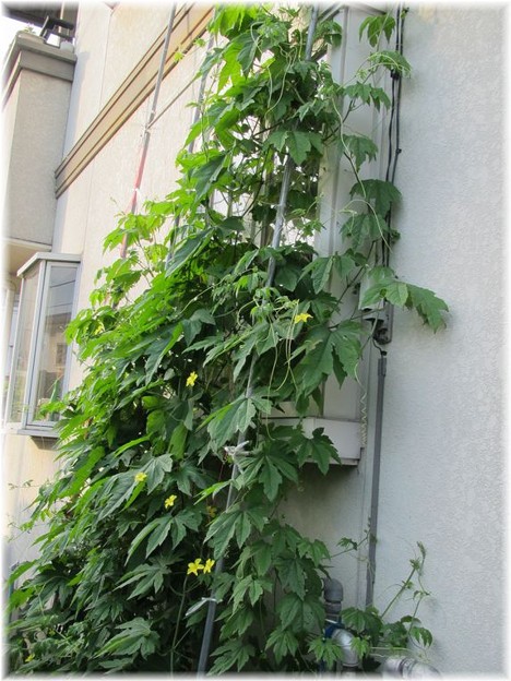 昨年 ならすでにグリーンのカーテンが朝のまぶしい太陽の光を遮って
