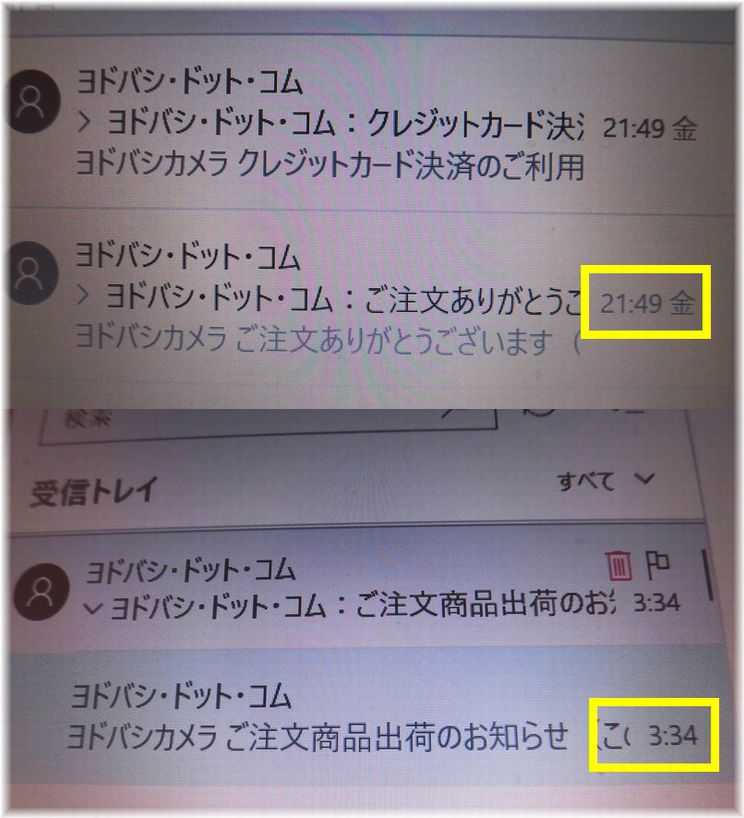 なんと夜の9時に発注した品物を6時間後の午前3時過ぎに