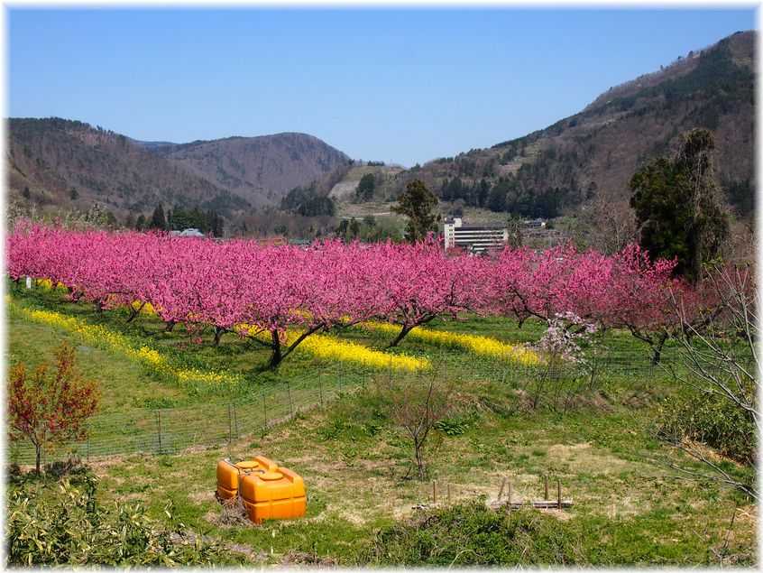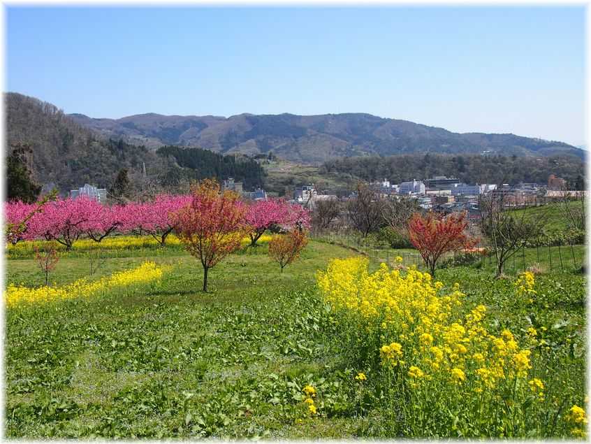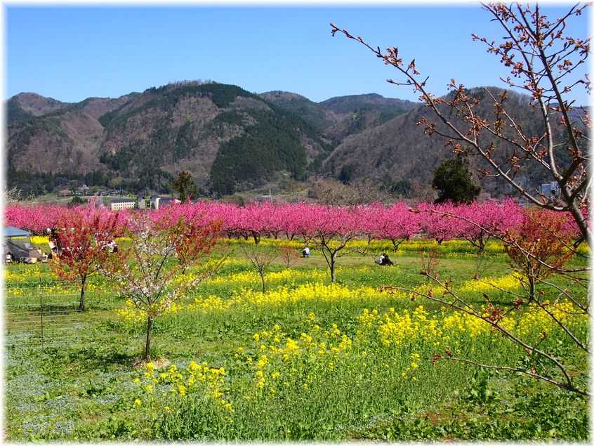 濃いピンクのはな桃と黄色い菜の花がとても綺麗でした