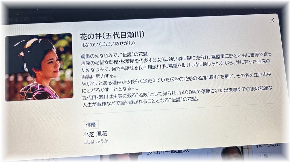 主人公の幼馴染でもある花魁の花の井役の女優さんも綺麗で上手だなと