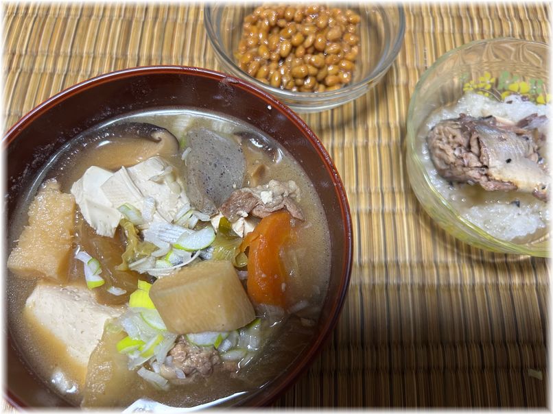 今夜の夕飯は長芋を使った豚汁でした ((*´゚艸゚`*))~