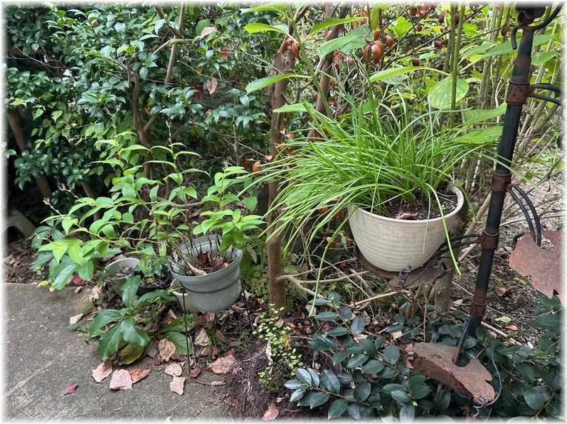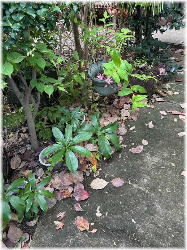 さて、歩いて来ようかと玄関から外へ出た所の鉢植え、夏の猛暑に耐えて緑色の葉を活き活きさせてくれていますその中でも特に元気に見えたのはホトトギスの鉢でした蕾をつけているのでもう少ししたら綺麗な花を咲かせてくれると思いますその周りの山茶花も良く見ると可愛い小さな蕾がいっぱいでした ꒰ღ˘◡˘ற꒱