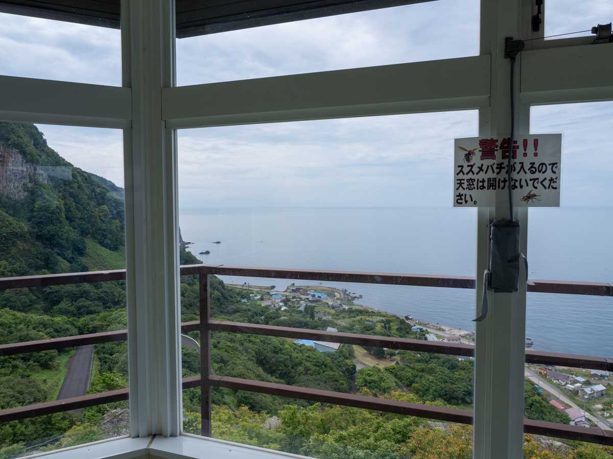 「雄冬岬展望台」の看板につられて寄ってみたが、脇が墓地となっている駐車場にバイクを置き、上り坂をかなり歩いてようやく展望台にたどり着く。窓が開けられず暑いので早々と退散。来るべきではなかったと思う。