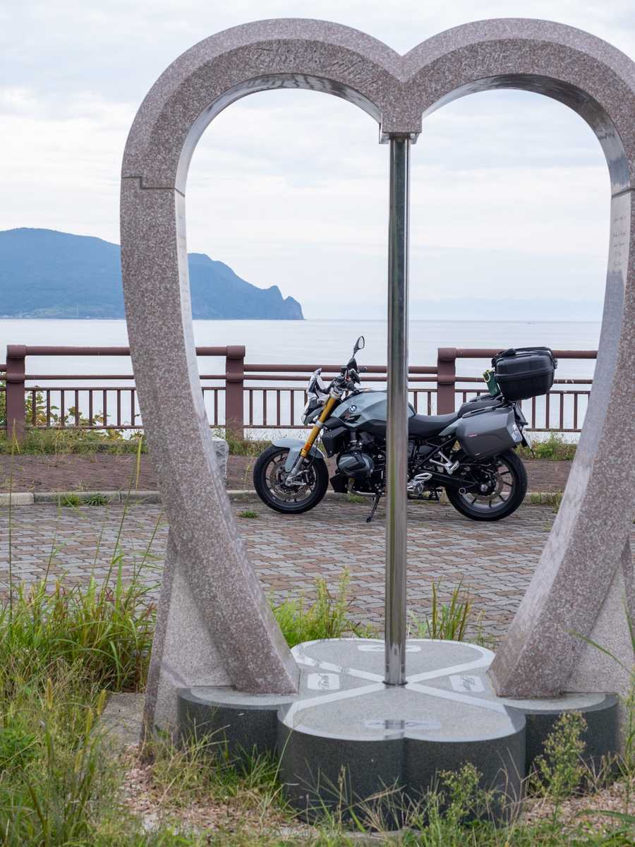 休憩が多すぎる。いや、休憩は良いことである。海岸近くの駐車場が目に入ったので入ってみる。大きなハート。営業していない喫茶店のような建物。グーグルマップには「ふるさと公園」とある。海が見渡せる良い場所だ。