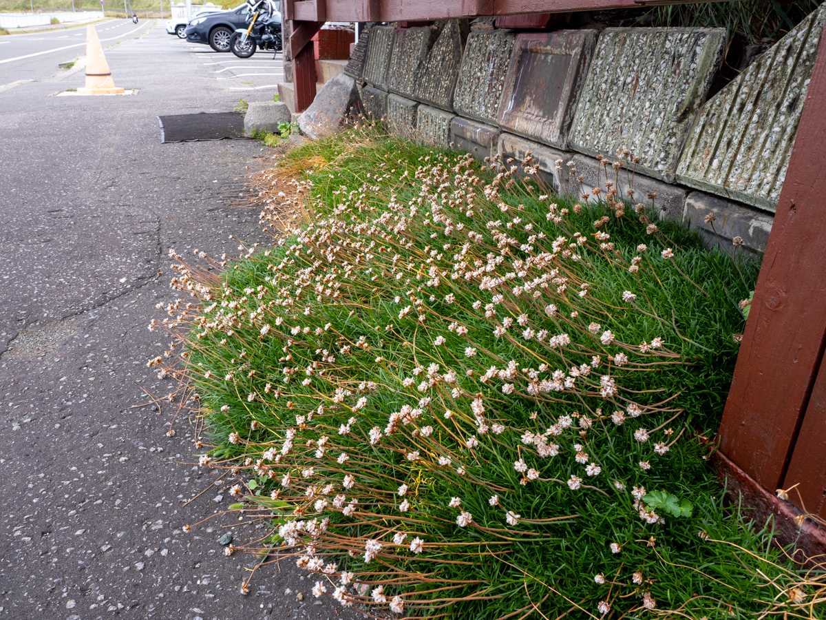 何とここでは「アルメリア」が野生化している。キャンプ場は奥に見える駐車場の山側にあった。細長いサイトである。