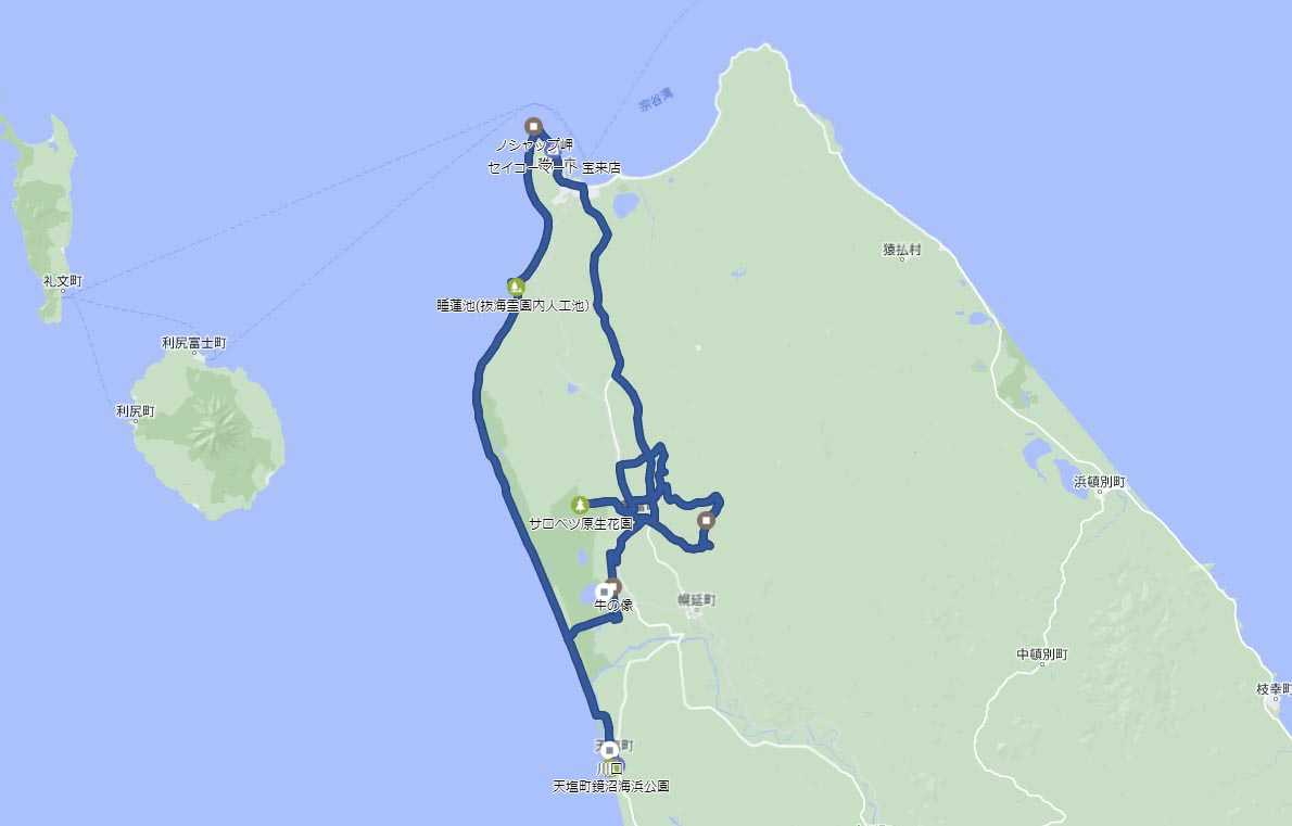 宗谷岬方面に走っていると、セイコーマートがあったので、昼食を買う。「ザンギ弁当」を選んで、バイクに積む。 国道40号を南に向かう。この道路は高速道路規格である。道道121号を南下した方が面白かったかもしれない。防波堤ドームを見るのを忘れてしまった。
