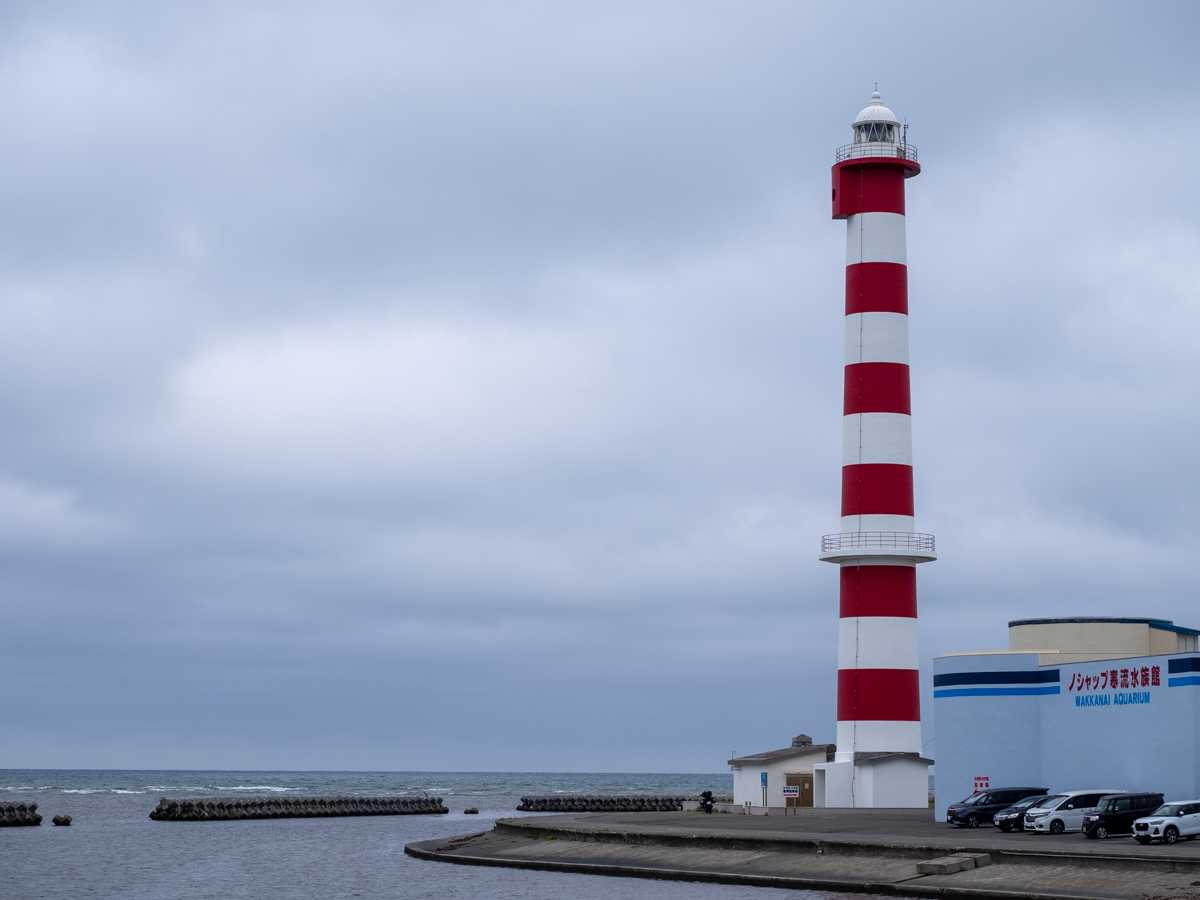 ノシャップ岬では駐車場を避けて灯台の下にバイクを停めた。途中、利尻や礼文は見えなかった。