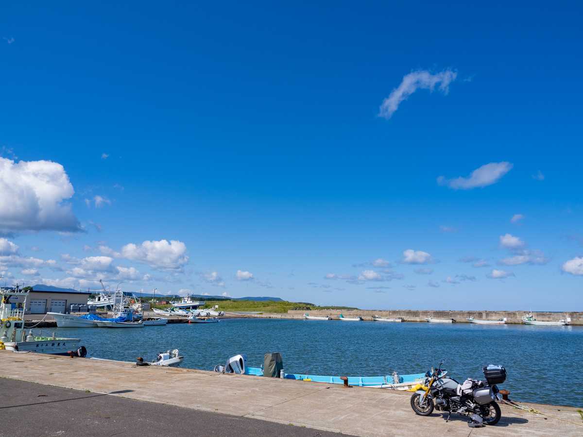 枝幸のセイコーマートで昼食を買い、岡島漁港の突堤の上をお借りして、カモメを見ながらパンとおにぎりを食べる。今日は野菜ジュースではない。酸っぱいものが欲しかった。
