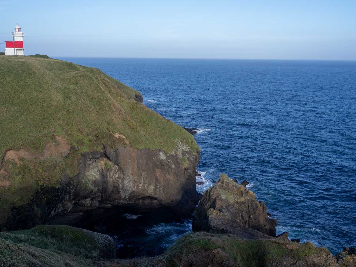 今日は灯台を見てから、少し迷ったが散策路を西のほうに歩いてみた。断崖絶壁が続く。