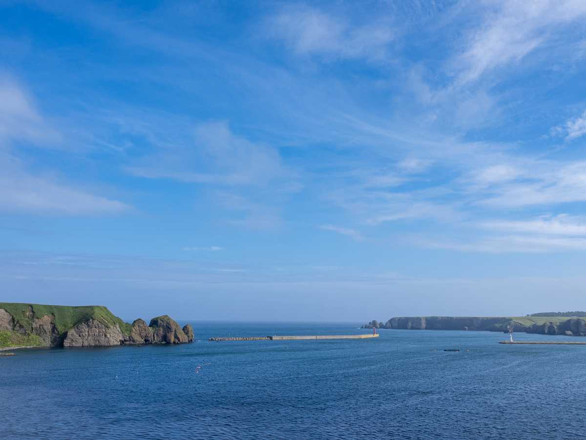 昆布盛の漁港にも寄る。大きな港である。海面に切れ落ちた断崖が印象的だ。こちら側は霧が全くない。