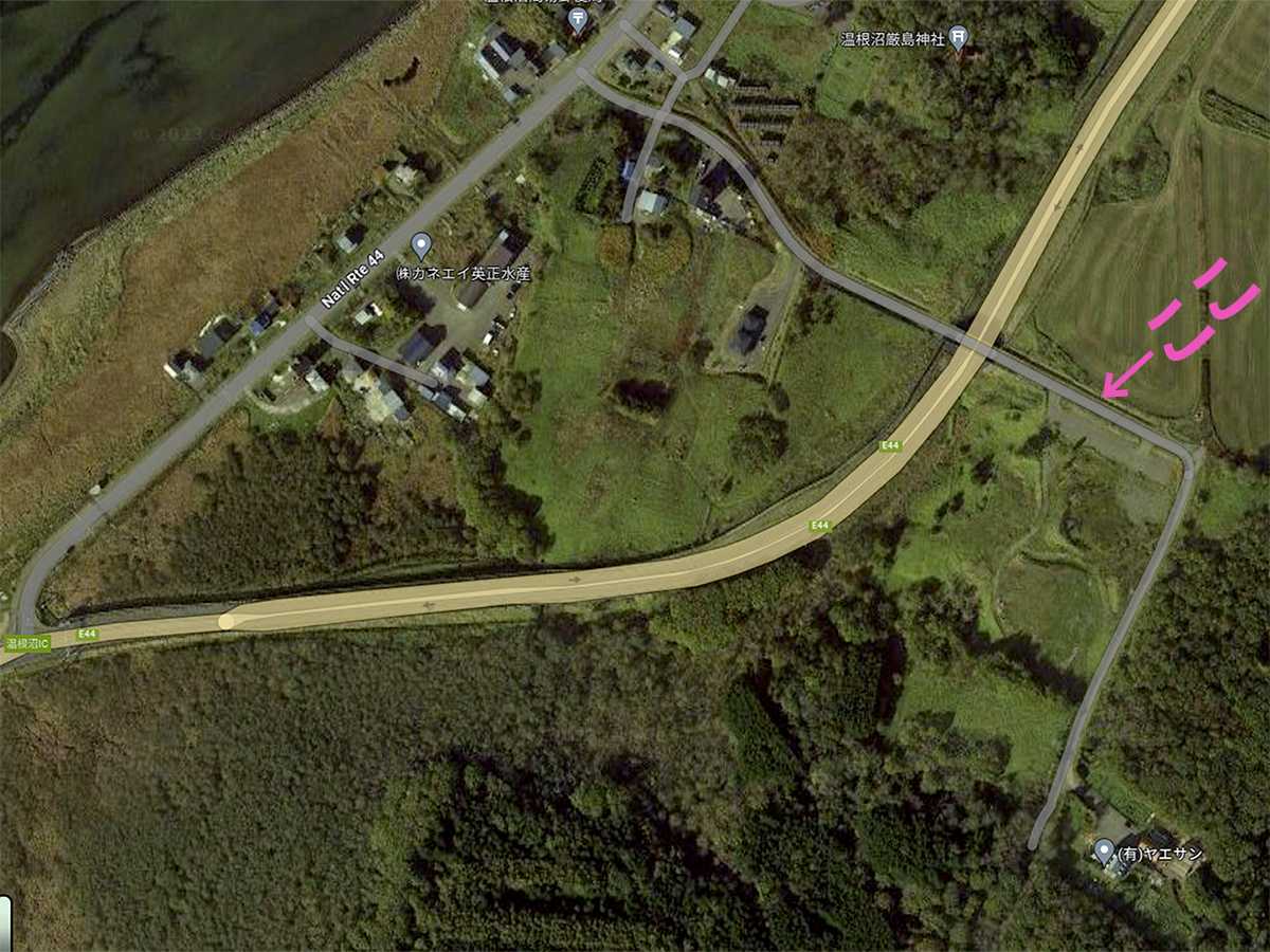 メモしてある場所近辺をグーグルマップの空中写真を見ても、それらしき場所は見当たらない。ネット検索したところ、「閉鎖 根室市キャンプ場」の記事を見つけた。そのページのグーグルマップへのリンクをたどると場所がわかった。