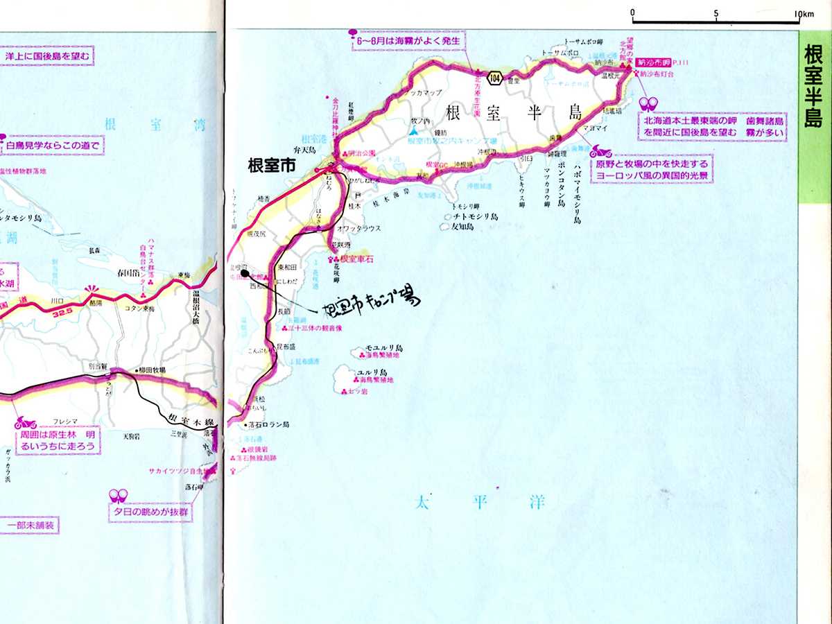 当時使っていたのは「北海道2輪車ツーリングマップ」だ。昭文社なので現在の「ツーリングマップル」の先駆けのロードマップである。