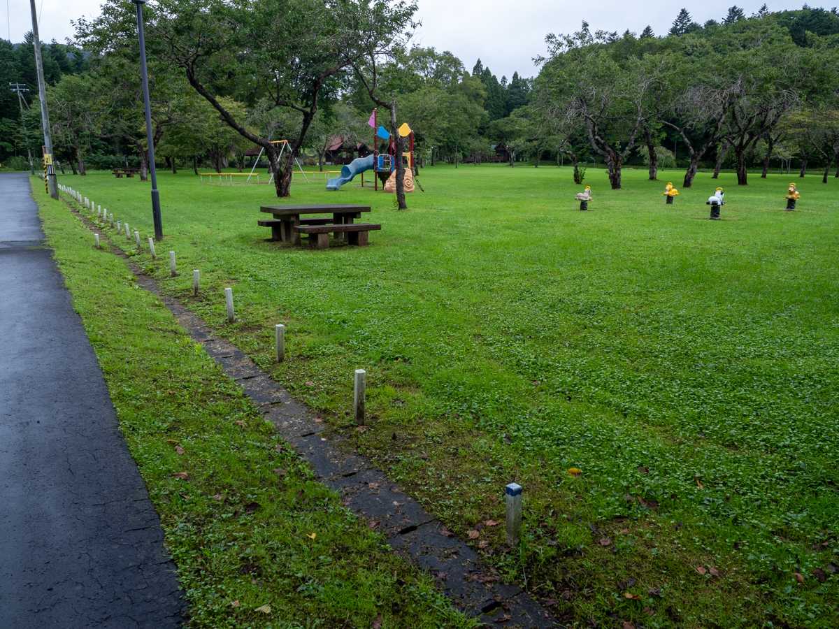 道の反対側には遊具がある。こちらも少しの傾斜があるが気にならないレベル。