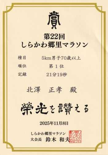 マラソン大会で47都道府県すべてで年代別入賞を達成したランナーです。次の目標は、47都道府県年代別3位入賞です。富山県、徳島県の2県の大会で3位入賞すれば達成です。2つ目の目標はお城マラソンで大名にランクされることです。