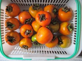 昨日、ミカン畑の上にある渋柿をとってきました。今日は早速干し柿をつくりました。1.収穫した渋柿です。2.まず、渋柿の皮を剥きます。3.タコ糸で2つの渋柿をつなげます。4.このまま、干すとカビが生えるので、熱湯に30秒ぐらい浸します。5.渋柿を外に干します。だいたい1カ月程度で食べられるようになります。