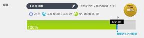 10月の月間走行距離の目標は300kmでしたが、何とか達成することができました。中旬に祭典があったらして走れませんでしたが、後半追い込みました。11月も月間走行距離の目標は300kmです。頑張ります。