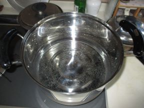 明日、年越しそばを16人分作るので今日は16人分のつゆを作りました。1.まず水2,600ccを沸騰させ、本枯れ節のかつお粉を180gを入れ、弱火で アクをとりながら3分ほど煮出します。2.煮出したものを漉器にかけ、余分な粉などを取り除ぞいて出汁の完成です。 3.出汁に本返し830ccを入れて、85℃になるまで温めます。その際に、香りづけや魚の 臭いを消すための鉄の棒を同時に温めます。4.85℃になったら、火を止めて鉄の棒をつゆの中に入れます。5.煮切り味醂と煮切り酒を作り、4のつゆに入れます。6.5のつゆを氷水に入れ冷まして、完成です。