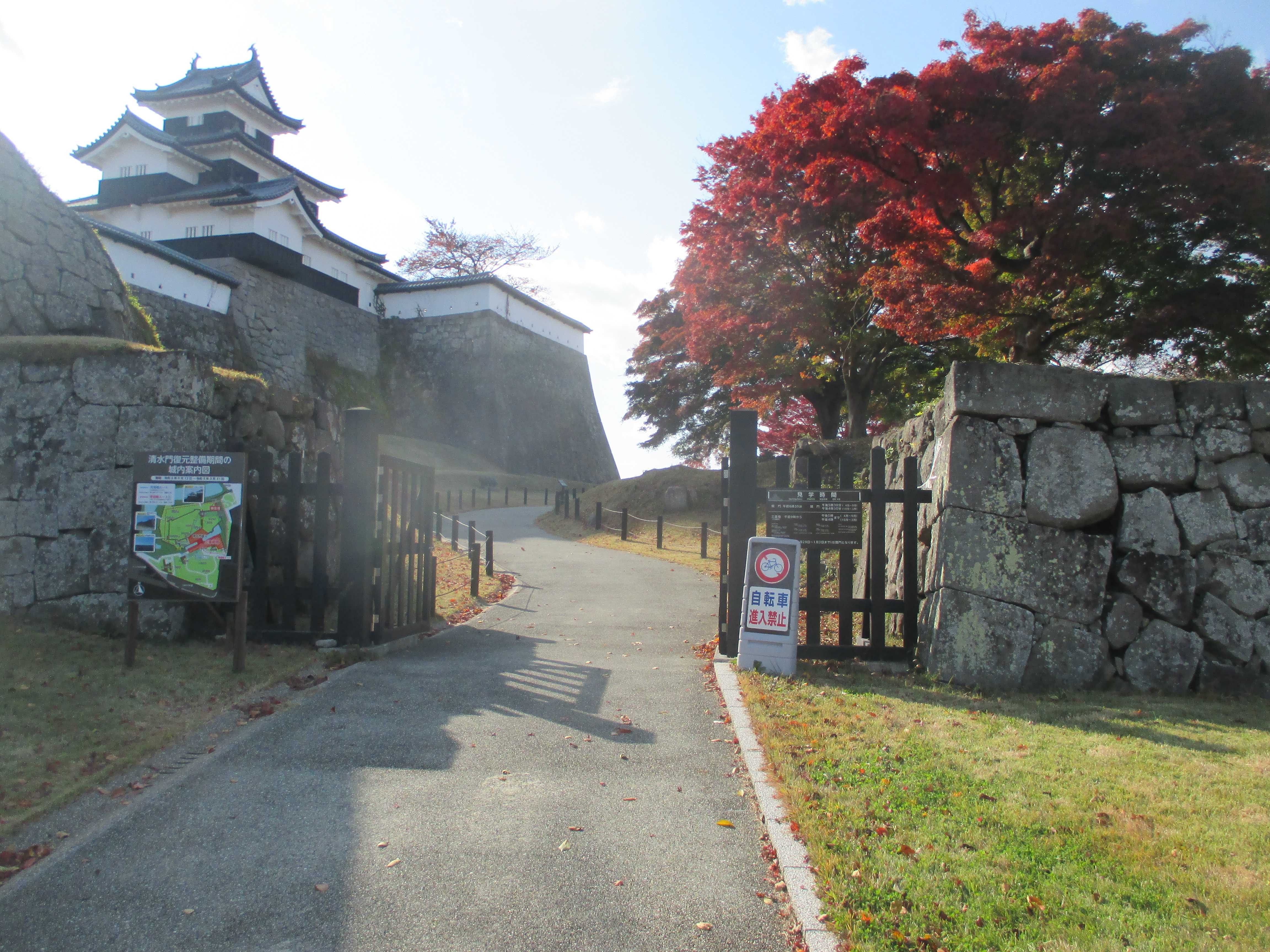 太鼓門跡二之丸跡矢之門跡水懸口外堀帯曲輪跡櫻門跡本丸跡修復中の清水門前御門三重櫓三重櫓からの眺め本丸石垣半円状の石垣 徒歩 白河駅 15:25発 東北本線