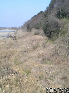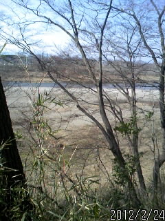 「主郭? らしい」 神社の横に『思川 ⇒』っていう案内板さ見つけた。『鷲城』からも、思川がみれるんだど。 さっそく、行くこうとしたんだけんど、こんな道なんだ。 実際はもっと笹がいっぱいで、獣道みたいになってたんだけどな。 さあて、行くか、戻るか・・・ よし、行く! せっかくきたんだから、ちょこっとでも、思川さ見たかったんだ。 城跡からでれば、いっくらでも見れるけど、 上からみたんと、下からみたんじゃぁ、イメージが違うべ? 城からみた思川が、見たかったんだ。 藪を掻き分けていくと、先は広場みたいになってたど。 そっから見た『思川』。 うわ~。緑色だ~。『祇園城』でみたんと、ぜんぜんちがうど~。 水の量も多いし、深さがあんだな~。『鷲神社』の西側にあたるこの辺は、主郭があったんじゃないかって言われてる場所なんだと。 草や木が茂ってて、広さがよくわかんないべ。 ちょっと主郭には、狭ような感じだけど。どうなんだべ? 奥のほうは、案外広いんかもしんないな。 草ぼうぼうで、広場の向こうには、いけなかったけんど。 神社の裏に当たる場所は、木や草がたくさん茂ってる場所があったからな。 そこらへんが、曲輪になってたんかもしんないな。 最後に、木々の隙間から上流を見た。 上流にも、水が並々と、流れてく。 夏になったら、釣りもいいな~。 なんてな。釣りはしたことないから、気分だけ、な。 ・・・『鷲城』にいた兵たちは、ここで、釣りさしたんかな? ランキング参加中! ぽちっと 押しとこれ~!にほんブログ村にほんブログ村