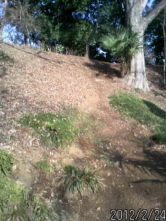 「小山総合公園」 3月21日。『鷲城』さ、行ってぎた。『鷲城』は、栃木県小山市外城ってとこに、あってな。 こないだ行った、『祇園城』と同じ、小山一族が築いた城なんだと。 小山義政が築いたっていうけと、このへんは、よくわがんないみたいだな。 向こうに見える林ん中に、『鷲神社』がある。 ちょうど、青い建物の向こっかわあたりだべか。 神社のある辺りが、一番の見どころポイントらしいんで、 まずは神社さ目指して、行軍開始だど! 今回は、城址専用の駐車場がないんで、隣の『小山総合公園』の駐車場に止めたんだけどな。 駐車場は広くてな。隣の車を気にせずにとめられたんだ。 だども、ちっとばっかし、遠くへとめちまってな~。 公園内をぐるりと、回りこまなくっちゃ~なんない。 はやぐ城さ行きたいのに~。 おまけに、強風。 来る途中にあった信号機が、ぐらぐらって、揺れっちゃ~ぐらいだよ。 強風に負けず、ぽてぽて歩く。公園の端っこについた。 公園の周りを囲む森林は、土塁かな? 覗き込むように歩いていたら、 梅の花。めめこいな~。春だべな~。 んで、梅を見ながら、さらに歩く。 左側は、広々とした芝生。 夏になったら、ねっころがって、昼寝もいいな。 しかし、広いな~。『鷲城』跡と『小山総合公園』、どっちがでかいんかな~? なんて、考えながら歩いでだら、バーベキューさ、出来る広場と、トイレを発見。 さっき見た青い建物は、この施設だったみたいだね。 その脇に城へ通じる道を発見! あんまし、自信がないけんど、他に道っこさないかんな。 たぶんここだんべ。 さあ~!こっからが、本番だど。レッツゴ~♪ ランキング参加中! ぽちっと 押しとこれ~!にほんブログ村にほんブログ村