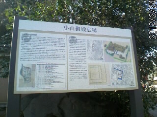 「小山評定址」 小山市役所に到着だど。 ここには『小山評定』の石碑があんだ。 市役所の中にあるって聞いたんだけんど、どこかな? とりあえず、市役所の入口目指して歩いていくと、あった! これが、『小山評定』址の石碑。 真後ろにある白い建物が、市役所だど。 ほんと。市役所の真ん前! はずかし~w。 ええと。『小山評定』っていうのは、『関ヶ原の合戦』で重要な役割を果たした場所なんだそうだど。 おおざっぱに、要点だけ書くと、 慶長5年(1600)7月24日に徳川家康が、会津の上杉景勝を討つために小山まで来たら、 石田三成が、挙兵したって知らせをうけたんだって。 25日、軍議を開き、『関ヶ原の戦い』に突入した。 その会議が『小山評定』。んで、会議を開いた場所が、ここらしい。 ええと。つまり、なんだべな。 ここには、昔、御殿みたいな建物が建ってたってことなんかな。 それとも、隣の御殿址には建てられなかったんで、ここに建てたんけ? ネットをみてたら、軍議は3間4方の仮御殿を急造した、って書いてあった。 へえ~。んじゃぁ、ここに、仮の御殿があったってことなんだべな。 後ろに説明らしき文章があった。 これは、『関ヶ原の戦い』に突入するまでの流れを説明したもの。 じっくり拝見したかったんだけど、ほら、ここは市役所の真ん前だかんな。 人さ、いっぱい通るんだ。 こっぱずかしくてな。早々に、退散してきちゃったっぺw。 帰りは市役所の横から、『思川』に抜ける横道を行く。 そうすっと、昨日ブログに乗せた、『小山御殿』の崖んとこにでるんだど。 そのまま、ず~っと『思川』沿いに歩くと、『祇園城』へ戻れんだ。 祇園城を、一周しちゃったっぺw。 ランキング参加中! ぽちっと 押しとこれ~!にほんブログ村にほんブログ村