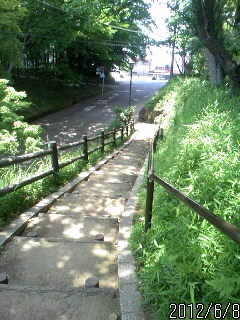 「堀跡」『本丸跡』から、『4の丸』さ移動すんど。 ここら辺は、学校の南側、『3の丸(推測)』の南端になっとこだな。 下さ降りる階段があんだけどな。 南側の『切岸』も高さがあっから、階段も急だど。 おっと。ここでストップ!『芳賀城』は、気楽に見れる城跡が、あんましないんだけど。 ここに一つ、みとかなきゃなんないとこさ、あったんだ。 どこかって? ここだど! ただの道だなw。 だども、ただの道じゃ~、ねんだな~。 ここは、『3の丸』と『4の丸』の境目だった、『堀の跡』なんだと。 道は舗装されちゃってっけど、左右の崖を見てみっと、 ちょっと、堀っぽいべ? 駐車場の近くからみたとこ。 この辺が堀の入口さ、なんだべな。 幅は、昔のまんまなんかな? だとしたら、規模の大きな堀だったんだべな。 これは、『4の丸』の上からみた『堀跡の道』。 あれ? なんか変だべな? 駐車場が、道の下にあんど? 道が堀底だったとしたら、な。 駐車場があった辺りは、堀よりも低いってことに、なんな。 駐車場や公園になってっとこも、昔は曲輪の一部だったはずなんだけど。 ど~ゆ~ことなんだい? 堀跡を道にすっときに、土を盛ったんかな。 それとも、公園側を、掘り下げたとか? あるいは、地面の高低差はそのまんまで、間に土塁のような壁さ、あったとか? 道は登るには、ちと苦労しそうだけど、緩いくだり坂でな。 一番高いとこでも、駐車場んとこから1~2mってとこかな。 戦国時代の城って、こんな段差は普通にあるもんなんけ? それとも、現代に合わせて、開発しちまっただけだべか。 変なとこさ、みてんな~、って思うかもしんないけど、 気がついちゃったもんは、しゃ~ないべ。 気になるな~。 うう~ん。謎だ。 ランキング参加中! ぽちっと 押しとこれ~!にほんブログ村にほんブログ村