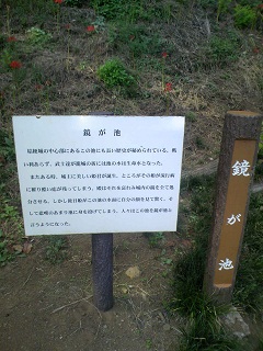 「鏡が池」 『水堀』の突き当たりはな。 ちっこい池になってんだ。 水辺は恐いんで、そろそろと近づく。 覗きこんでみた。 ふ・深そうだな。 ここは『鏡が池』。 悲しい御姫さまの伝説さ残る、池なんだど。(『鏡が池の伝説』 詳細は、こちら) 上からみたとこ。 周りは土塁で囲まれた、堀のようになってんど。 ふんじゃ~、池の水は、どっからきてんだべな? 聞いた話だど。『鏡が池』の底から、湧き水がでてるとか。 へ~。 もしかすっと、昔はぼこぼこと、水さわき出てて その水を『水堀』に溜めてたんだべか? この池から、曲輪内の『溜池』まで、繋がってたんだべか? う~ん。違うかな。 写真の上は『二の丸』跡。 3メートルはあんべな。綺麗な斜面になってんど。 今は木が生い茂ってっけど。 下の曲輪広場に負けないぐらい、広い曲輪だったみたいだど。 中には、入れないんかな~? ちと、道はみつかんなかったんだけど。 覗いてみたいな。 最後まで読んでもらって、うれしい~ど~♪ あんがと~。ランキング参加中! ぽちっと 押しとこれ~!にほんブログ村にほんブログ村にほんブログ村
