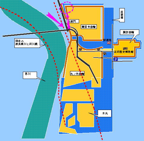 「古河城本丸周辺と下河辺氏」『古河城本丸』の周辺地図さ描いて見た。 赤い線が『渡良瀬川』があるとこ。『古河城本丸周辺』は、すっぽりと、河川の中さはいっちゃってんだ。 現在は、堤防の上に遊歩道さあって、『渡良瀬川』沿いに、散策できるようになってるらしいど。 んで、『本丸跡』近くの堤防上に、『本丸跡の石碑』さあんだと。 今回は、時間の都合で行かなかったんだけど。 『渡良瀬川』沿いに歩いていったら、 当時の『古河城』が、どんだけでっかかったか、 実感できたかもしんないな~。 なんもない場所でも、実際に歩いてみるって、だいじだど。 空想だけじゃ、わかんね~ことが、わかることもあっかんね。 さて、『下河辺氏』の話さすんべ。 そうそう。上の『古河城地図』なんだけど。 ありゃ、『江戸時代後期の古河城』の地図さ参考にして、描いたもんなんだ。『古河城の完成形』ってとこかなw。 他の城も同じだと思うけど。『古河城』は、いきなりこったら、でっかい城になったんじゃないんだ。 最初は『本丸の周辺のピンクんとこ』辺りに、『下河辺氏の館』さあった、って予想されてんだって。 こないだの『下河辺行義』が、 荘園さ構えたとこが、この辺りらしいど。 曲輪一個分、ってとこかな。ちっこいな。 んで、この隣に『頼政曲輪』って、名前さついた曲輪があんだけど。 昔はここに、『頼政神社』さあったんで、『頼政曲輪』って名前さついたんだと。 あ、だども、『下河辺行義』のころは、 曲輪はなくって、『頼朝神社』だけ、だどもな。 頼政は『源頼政』のこと。平安時代の武将でな。『鳥羽院』に、仕え、鳥羽院の寵妃『美福門院』とも交流さあったとか。『源頼政』は『父親・源中政』が下総守だったとき、 父親と一緒に、下総国へ下向しててな。 そん時に、『下河辺行義』と、交流さもったらしいべ。 んで、その後。『下河辺行義』は、『源頼政』の郎党になったんだ。 そして、『下河辺庄』は、『源頼政』の仲介により、鳥羽院に。 鳥羽院から美福門院に、寄進され、 さらに、『皇女・あき子内親王』に伝領されて『八条院領』になった、と。 あ、『あき子親王』のあきは、日に章って書くんだけど、 機種依存文字で、出なかったんで、ひらがなにしたど。 『下河辺行義』にとっちゃ、だいじな人だったんだな。 だから、屋敷の横に、『源頼政』さ祭った神社さこしゃったのかな。 と、思ったら、神社にゃ、また別の伝説さあるみたいだど う~ん。また、脳みその限界さ、きたど~。 全部いっぺんにゃ、覚えらんないべ。 ってことで。今日はここまで。 『頼政神社』の話は、またこんど、な。《参考》【送料無料選択可!】古河の歴史を歩く 古代・中世史に学ぶ (単行本・ムック) / 古河歴史シンポ...価格:1,995円(税込、送料別) 『古河城 水底に沈んだ名城』 古河歴史博物館(博物館の特別展示の図録目録) 最後まで読んでもらって、うれしい~ど~♪ あんがと~。にほんブログ村