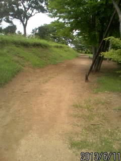 「虎口?かもしんない土塁」 さて。『逆井城』の南エリアさ、ぐるっと回ってきたら、 元の場所さ戻ってきだど。 おトイレ前・・・もとい、『本丸前』だな。 左手にゃ『観音堂』さ、あるとこだど。 そこに、西さ向かってまっつぐ伸びた道さある。 綺麗にならされた地面。 整えられた植物の柵。 公園の出入り口みたいだな、と散策さ後回しにしてたんだけど。 よく見ると、道の横が整えられた土手っこになってる。 公園用に、凸凹な地面さ整えただけかもしんないけど、 なんかありそうな予感。 公園の案内地図さみっと、 この先にゃ『水堀』と、外さ通じる橋があんだって。 へ~。他にゃなんもないんかな? ほてほて。左右さ見ながら歩いてく。 この道、下り坂さなってるど。 んで、見た目より傾斜がきつい。 綺麗な見かけに、だまされた~。 それに、ぱっと見よりも、距離が長い。 橋はすぐそこだと思ってたのに、右っかわに林が出現。 梅の木だっべ。ここで梅栽培してんのかな。 梅林の奥は、『本丸』らしい。 ぐるっと周りこんで、『本丸の西側』に出たみたいだな。『本丸』んとこの掘りさ、見えるかな? 梅林の中さ、踏み込んでいった。 足元は草が刈られて、ちゃんと手入れされてるみたい。 だども、ちっこい凸凹さある。 それに、あんまし人さ通んないんだな。 地面さふかふかしてて、油断できね~。 踏み均してないから、足元さやわらかくってな。 バランスが取りにくかったんだ。 んで、掘りなんだけど・・・よく覚えてない。『本丸』は、わかったんだけど。草が生い茂ってたんかな? 掘りは、よくわかんなかったような? ん~、記憶が曖昧なのは、 ここで別のいいもん、めっけちゃったからだと思うど。 それは、これ!『土塁』だな! 最初は梅林の境目かな? とも考えたんだけど。 ここは『逆井城』の跡だかんな。『土塁』って考えたほうが、自然だべ。 もっと離れてみると まっつぐに伸びた『土塁』。 奥の森が『本丸』のある高台。 写真の右側が、梅林だど。 そういや、梅林がある敷地は綺麗な四角形してる。 これは、もう。何かの建物さあった場所、 っ推測しちゃっても、いいかな? 違うかな。 それとも『虎口』だったとこかな?『土塁』の先は、『水堀』 『水堀』は南に続いててな。『船着き場』んとこまで、繋がってんだど。 この辺は、水も一杯満たされてて、『水堀』の面影さそのまんま残ってるべ。 橋さ渡って、『船着き場』の方向さみてみっと、 おお~、見事な『土塁』! あの辺は『横矢みたいなでっぱり』や『古河城書院礎石跡』さあったとこだな。 外からみっと、また、立派だな~。 手前の『水堀』は葦でいっぱいで、掘りの形はよくわかんないけんど。 葦の葉っぱが、さわさわ。『夏の逆井城』って感じ出てて、いいな~。 正面の『二層櫓』もいいけんど。 裏っ側の景色も、いいべ~。 うん! 裏さ回ってよかったな。いいもんみっけちゃったっぺ! 最後まで読んでもらって、うれしい~ど~♪ あんがと~。 ランキング参加中! ぽちっと 押しとこれ~!にほんブログ村
