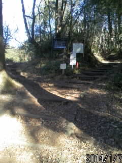 「笠間ハイキングコース」『治功神社』さ出てぐるっと右手側に周りこむ。 そうすっと、山の上さ登る階段さあんだ。 階段っつってもな。 山によくある、斜面に木を渡した 簡単な作りのもんなんだけど。 斜面が急なんで、とっても役にたつど。 登りはじめてすぐんとこに、分岐点さある。 右側の登り道が『天守台跡』へ続く坂。 左側の道は『つつじ山公園』さ続く坂。 左に道は、岩場さ周り込んで降ってくみたいだべ。 岩場の向こうは、どんな景色さなってんのかな? 興味さ惹かれる坂道だけど。 今回は『天守台の石垣』さ見るって目的があっかんな。 右側の登り坂さ進むど。 まっつぐに登って行く、と思いきや。 この道は、ちょうど『治功神社』の真上さ通って 右側にぐいっと曲ってたみたい。 方向でいうと、南のほうだな。 道は延々と続く一本道だから、地図さなくても迷わないど。 安心してゆっくり、登っとこれね。 長丁場さなっかんな。 最初から飛ばすと、ばてっちゃうど。 どんぐらい登るかっつうと、 たぶん、20~30分ぐらいだと思うんだけど。 間に休憩さいっぱい、とったかんな~。 それにおばさんのスピードは遅いから、 あんまし参考にゃなんないべ。 ま、どんだけ時間さ、くったとしても、 1時間はかかんないはずだど。 まんなか辺りで、振り返ってみた。 おお~。足がすくむ~。 登りでいかった~。下りだったら、怖くて降りれなかったかも。 ちなみに、道の両脇は、崖みたい。 っつうのもな。 木や藪が茂ってたから。真下の景色はみれなかったんだ。 背伸びして、ちょこっと覗いてみたら、 崖みたいにめ~たよ。 あんましみてっと、高さが怖くて 登れなくなりそうだから、 途中から、上だけみてひたすら登った。 もう・・・階段・・・飽きた。 おや? 前方に、人工物さめ~る。 カードレールだど! あそこまでいけば、山道は一端終わるはず。 やっと広い場所で、休憩出来るど~。 あ、ちなみに。ここまでの山道にゃ、 休憩出来るような広場や椅子は、ねがったよ。 だもんで、休むときにゃ、道に座って休む。 あるいは、立ちっぱなしで、休むことになっちゃうんだ。 目標がめ~たら、元気さ出て来た。 さあ、もう一息。がんばろう!::::::::::::::::::::::::::::::::::::::::::::: 最後まで読んでもらって、うれしい~ど~♪ あんがと~。 ランキング参加中! ぽちっと 押しとこれ~!にほんブログ村にほんブログ村:::::::::::::::::::::::::::::::::::::::::::::
