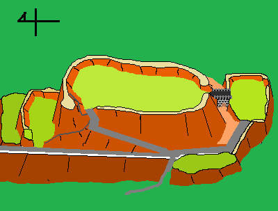 「第2の北城」 さてさて。『大田原城』の『北城土塁』の下は、 こんな感じ。 畑になっててな。ビニールハウスがあったど。 何がとれんかな? とんがらし(唐辛子)かな? 大田原市は、とんがらし(唐辛子)の産地で有名なんだ。 この辺でも、こしゃってんのかな。 実はこの畑も『北城』なんだって。 わかりやすいように、らくがき地図さ描いてみたど。 らくがきなんで、細かい部分は違ってるかもしんないけんど。 目さつぶって、見逃しとこれね。 下の階段が『蛇尾川の河川敷』と繋がってる入口。 んで、左っかわの高台が『本丸』だど。『北城』の中は、ブランコとか子供用の遊具があってな。 子供らがいっぱい、遊んでたっぺ。 空いたスペースは、花壇になってたな。 西のほうさ行くと、『お手洗い』があるよ。 そんで、『北側の土塁』の向こうが『畑になった曲輪』だど。 端っこが崖で欠けちまってんで、『北城』よりやや小さくめ~るけど。 敷地面積は、ほぼ同じじゃないかな。 もしかしたら『土塁』がない分だけ、『畑の曲輪』のほうが広いかもしんないな。『曲輪』には見えないよ、って思った人は、『蛇尾橋』までいってみな。 地図の下にある『蛇尾川』にかかってる、橋のことだけどな。 歩いて5分も、かかんねよ。 こっから『北城』がよくめ~るんだ。 赤い矢印んとこに、ビニールハウスがめ~るよ。 さらに目を凝らせば、青い矢印んとこに、平な場所がめ~た。 きっとあの辺が『北城の土塁』だど。 な! 外からみっと、『曲輪』にしかめ~ないべ。 う~んと想像力さ働かせてみっと。 黄色い矢印の辺りが『本丸』かな。『北城』よりさらに一段高いとこにあんだから、 あの辺だべな。 木がなかったら、『2段の北城』と『本丸』が、段々になってめ~たんだべな。 じ~っとみてたらな。 堅固な城の姿が、め~た気がしたど。《参考》【送料無料】とちぎの古城を歩く [ 塙静夫 ]価格:1,995円(税込、送料込)《電子書籍版》とちぎの古城を歩く 兵どもの足跡を求めて-【電子書籍】価格:950円(税込、送料込)【送料無料】栃木の城増補改訂版価格:2,039円(税込、送料別)::::::::::::::::::::::::::::::最後まで読んでもらって、うれしい~ど~♪ あんがと~。 ランキング参加中! ぽちっと 押しとこれ~!にほんブログ村にほんブログ村:::::::::::::::::::::::::::::::::