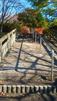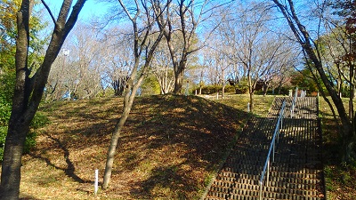 「階段」 坂道さ登ってく。 すると目の前に、こったら景色が現れた。 おお、すげ~。 また、入口だw。 っつうか、こっちがほんとの入口なんかな? 案内板もあるど。 これで城跡公園の全体が、把握できんね。 うん。道に沿って歩いていけば、 山の周りを、ぐるっと回れんだな。 迷うよなとこは、ないみたい。 のんびり歩いて、だいじみたいだな。 文字んとこは、何が書いてあんだべな?『山根城』の歴史とか、書いてあんのかな? ん~。違うな。 書いてあるのは『記念樹の森』が出来た由来だな。 都市化が進んで緑が少なくなってっる昨今。 身近に緑さ感じられるように、『山根城』の跡地を整備して、 皆がたのしく散策できるようにしたのが、『記念樹の森』ってことみたい。 平成4年ごろから、3年ぐらいかけてな。 植林しながら、緑の木々を育ててきたんだよ。 って書いてあるど。 へ~。すごいな。 もう20年以上も、たってるど。 その間す~っと、地域の人たちの手で、 緑の『山根城』が、守られてきたんだね。 こりゃ感謝して、登んなくっちゃ。 さてと。まずは山の頂上までいってみよ。 ここは『山根城』で唯一の『曲輪』なんだ。 本丸跡? ではないのかな? ちょっとよくわかんないんだけど。 ひとまず、ここさいってみよ。 地図によれば、階段を一直線に登ればいんだ。 楽ちん、楽ちん♪ だね。 で、これが、中央にどっしりと構えた階段。 近くでみっと、傾斜があるな。 そうだよね。山の斜面さ登んだもんね。 それも、左右にぶれることなく、 一直線に頂上さ目指してる。 こりゃ、難航しそうだぞ。 おまけに頂上、め~ないし。 登りきれるかな? なんか、心配になってきたよ。 わぁ~! 踊り場がある~。 一休みしよっ。 そうそう『山根城』はな。 頂上にある『曲輪』を囲むように、 山の周囲をぐるっと『帯曲輪』が 取り巻いている城址なんだ。 こんな感じだな。 階段の右のほうなんだけど。 広い空間が出来てるど。 そしてこの広場は、なが~く伸びて、 奥のほうさ続いてる。 このまま進めば『山根城』の周りを一周出来んのかな? 気になるな~。 だども今は頂上さ目指してんだから、 寄り道は、だめ。 ああ、だども、反対側も、いい感じ~。 奥に続く土の道・・・ ああ、歩いていきたい・・・。 紅葉してる木も、きれいだね。 何の木だろう? こんな感じで、『2重の帯曲輪』が 取り巻いてるんだって。 いい感じの、城址だな。 この先が、楽しみだど。^^^^^^^^^^^^^^^^^^^^^^^^^^^最後まで読んでもらって、うれしい~ど~♪ あんがと~。 ランキング参加中! ぽちっと 押しとこれ~!にほんブログ村 ^^^^^^^^^^^^^^^^^^^^^^^^^^^