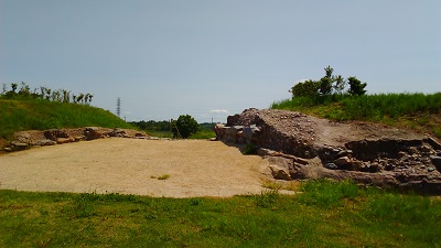 「東池跡と住居跡」 土塁の上から、降りる階段さがしてたらな。 こったら景色が目にはいた。 お、庭がある。 こっちは『本丸の内側』だな。 遠くにめ~る『筑波山』も、いいとこに顔だしてるし。 ここも、いい眺めだな~。 これは『東池跡』 南北 約32メートル 東西 約13メートル あんだって。 深さは、まちまちでな。 30~80センチぐらいだって。 へえ~。案外浅いんだ。 まちがって落っこちても、 おぼれないね。 ちなみに、手前の四角いスペースは、『住居跡』なんだって。 そういえば。『小田氏7代目の治久(はるひさ)』はな。 暦応元年(1338)に、『北畠親房(きたはたけ ちかふさ)』って人を『小田城』に迎えたんだって。 当時は『南朝方』と『北朝方』に分かれて、 戦をしてたんだけどな。『北畠親房』は『南朝方の重臣』だったんでな。『小田城』を『関東地方の南朝方の拠点』にしたらしいんだ。『小田城』は、重要な地点に位置してたんだね。 で、『北畠親房』は『小田城』いたときにな。『神皇正統記(しんのうしょうとうき)』を随筆したんだと。 もしかしたら、この池のほとりの建物で、日本庭園を眺めながら『神皇正統記』を書いたんだべか? のんびりできそうだし。 景色もいいし。 随筆すんにゃ~、良い環境だよね。『住居跡』といえば、こんなのもあるど。『東池跡』から北へ、少し離れたとこにあんだけど。 住居を再現した、休憩所なんだ。『小田城』、結構広いかんね。 うろうろと、あちこち見てたら、疲れっちゃ~もんね。 休憩所は、うれしいな。 だども、この建物。なんだか、おもしろいね。 屋根の下にも一個。屋根がくっついてるよ。 も少しじっくり、見たかったんだけど。 休憩中の人がいたんでな。 邪魔しないように、遠くから観察してたんだけど。 いつの時代の建物なんだべな? どんな使い方、してたんだんべ? うむうむ。建物、あんまし興味さなかったんだけどな。 ちょっと、おもしろく思えてきたど。 あ、手前の『白くて丸い跡』は『井戸の跡』なんだと。 どうやら『小田城』は、水不足とは無縁の城だったみたいだね。 すくなくとも、城内に井戸があったんだかんな。 汲みにいく手間は、だいぶ楽になったべな。 さて。だいぶ寄り道しちゃったけんど。 そろそろ『土塁の下』に降りたいな。 さ~てと、階段、どこだべな~?《参考》 小田城跡 (案内所でもらったパンフレット)【送料無料】 関東の名城を歩く 北関東編 茨城・栃木・群馬 / 峰岸純夫 【単行本】価格:2376円(税込、送料無料)図説茨城の城郭 [ 茨城城郭研究会 ]価格:3024円(税込、送料無料) (2016/8/11時点)下野・宇都宮一族 [ 七宮けい三 ]価格:3024円(税込、送料無料) (2016/8/11時点)常陸小田氏の盛衰 [ 野村亨 ]価格:1337円(税込、送料無料) (2016/8/11時点)################################# 最後まで読んでもらって、うれしい~ど~♪ あんがと~。 ランキング参加中! ぽちっと 押しとこれ~! にほんブログ村##################################