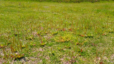 「西池と溝」 『どでかい堀』を見ちゃったもんだから 頭がくらくらしてきちゃったよ。 いったん、『本丸』の中にもどろ。 おや? 足元に『オオバコ』が咲いてるど。 気がつかなかったな。 土塁ば~り、見てたかんな。 おやおや。よくみれば、他にも草花がいっぱい咲いてるよw なんの花かな? 和むな~♪ 花をみながらほてほて歩いてたら、こんなのめっけた。 溝? だべな。 なんの溝? これも遺構かな? きょろきょろ。 周囲を探ってみたけんど。 う~む。なんもヒントがめっかんない。 あ、あれはどうかな? 案内板があるよ。『西池』だって。 だいたい16世紀後半ごろに出来たものでな。 南北 約14メートル 東西 約17メートル 深さが 約1メートル あんだって。 だども、これは、さっきの溝とは、関係ないみたいだな。『西池』は、こっち。 白い石がひかれた四角いとこ。 あんがい狭い、池だね。 だども、最初は 南北に 40メートル以上 東西も 20メートル近く あったらしいな。 なんでちっこくしたんだべな?『虎口』さ、こしゃるため? かな。 池が『虎口』の真ん前にあったら、出入りしにくいもんね。 で? さっきの溝は? なんだべな? 説明がないんで、わかんないんだけど。 溝の先は石が引かれた、広場になってた。 どうやらこの辺に『大型建築物』があったらしいど。 殿様の主殿だったのかも? って説もあるらしい。 ふ~ん。で、溝は、なんのため? どこにも理由は書いてないけど、 しっかり跡が残ってんだからな。 なんかに、使ってたはず。 雨水の排水にでも、使ってたんかな? 謎、です。 《参考》 小田城跡 (案内所でもらったパンフレット)【送料無料】 関東の名城を歩く 北関東編 茨城・栃木・群馬 / 峰岸純夫 【単行本】価格:2376円(税込、送料無料)################################# 最後まで読んでもらって、うれしい~ど~♪ あんがと~。 ランキング参加中! ぽちっと 押しとこれ~! にほんブログ村##################################