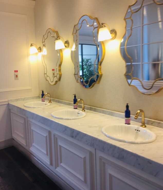 手を洗う場合に置いて有るブルーのボトルが洗浄剤ですがラベンダーの香りが心地良い