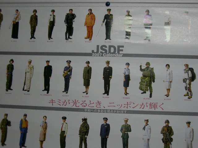 最近また周りで風邪(インフルエンザ?)が流行ってるなあ自分の場合はまだ大丈夫だけど、油断大敵。とりあえずホットドリンクにお酒を入れて飲んでぽっかぽか。それにしても相変わらず面倒くさがりやなので部屋のカレンダーも去年の12月のものが掛かってたのをようやく今年の1月に切り替え。っていうかもう1月も終わりなのね。部屋のカレンダーは趣味を思いっきり反映してJSDFのカレンダー。JSDFというのは日本の防衛の要、自衛隊。まあ活躍する場が無ければ一番なんだけどね。