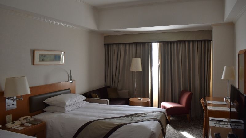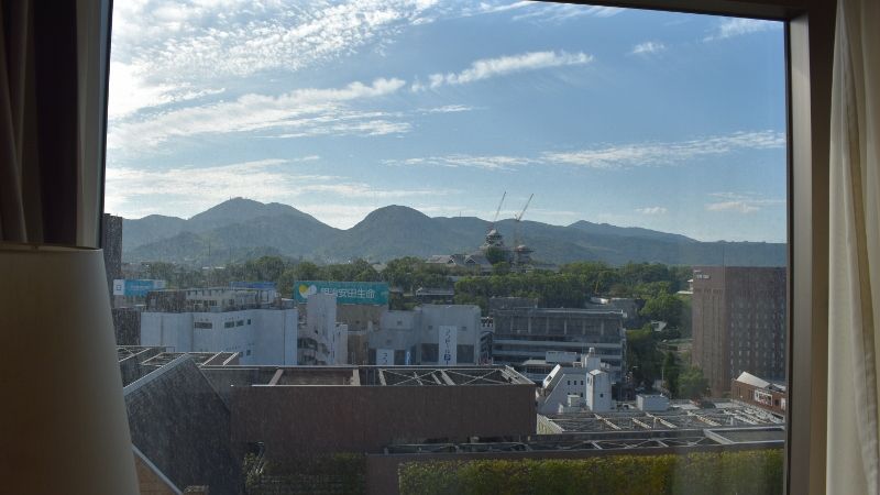 夕飯はルームサービスを頼んで、熊本城を見ながら。