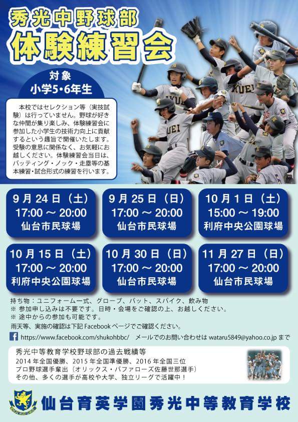 秀光中野球部について、詳しく知りたい場合にはポスターにあるフェイスブックに近況がつづられています。