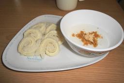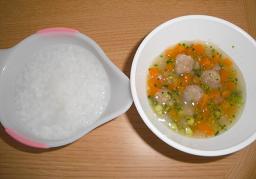 お皿を割ってしまいました~今年に入ってこれで4回目・・・(TдT)割りすぎだぁ~~~!!もうお皿を割りませんように ( ̄人 ̄)☆昼食☆・おかゆ・肉団子スープ肉団子はちょっとかたかったから食べにくそうでした。